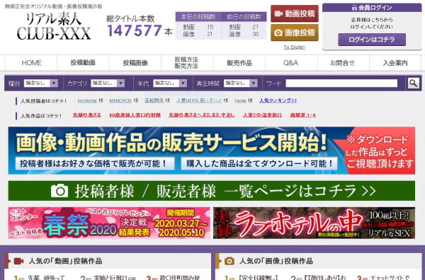 Club-XXXは、素人によるハメ撮りなどの動画&画像の投稿サイトで、サービス開始は、2004年と既に15年以上の運営歴がある老舗サイトです。